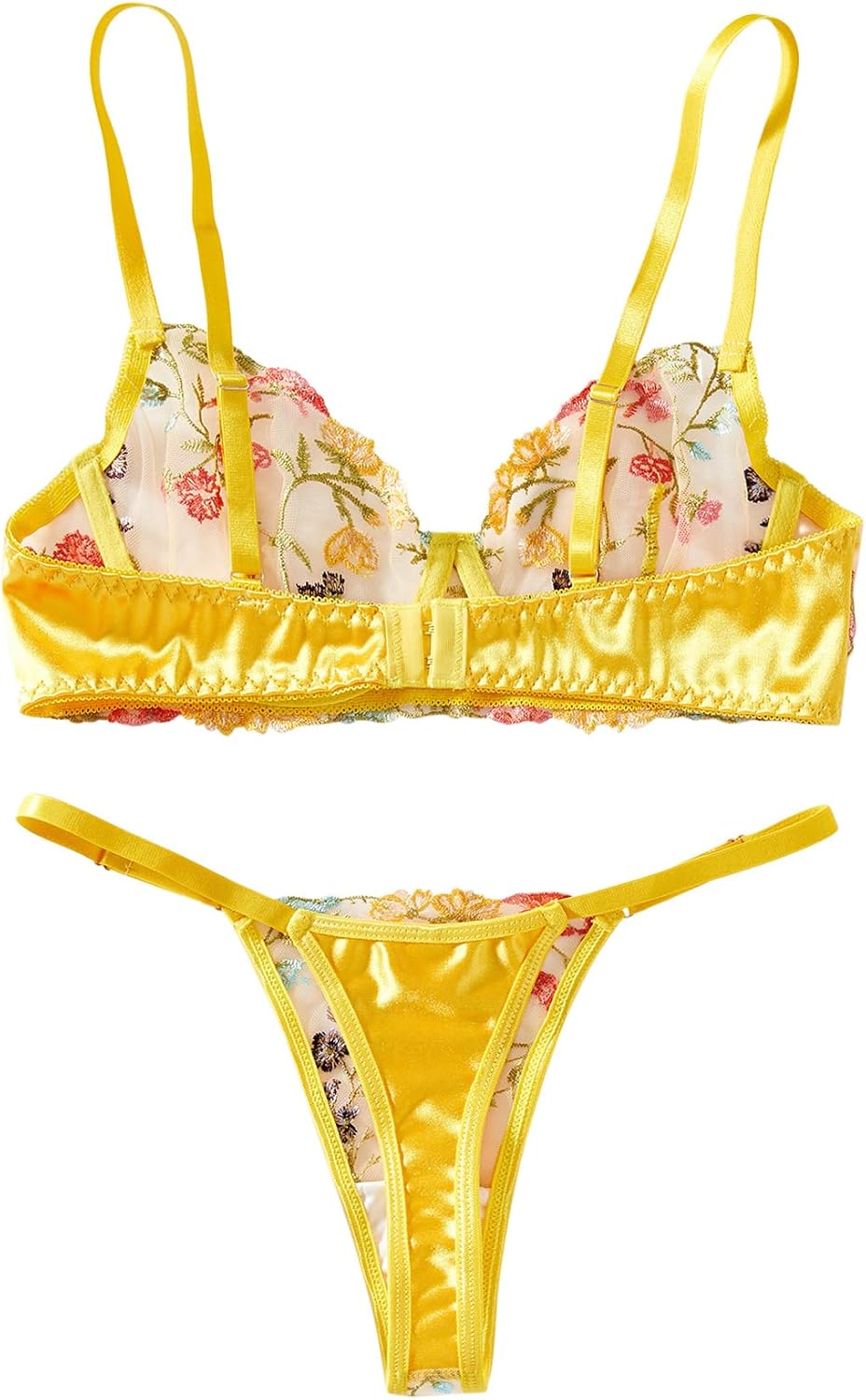 Sexy Floral Embroidered Mesh Women Underwire Push Up Lingerie Set