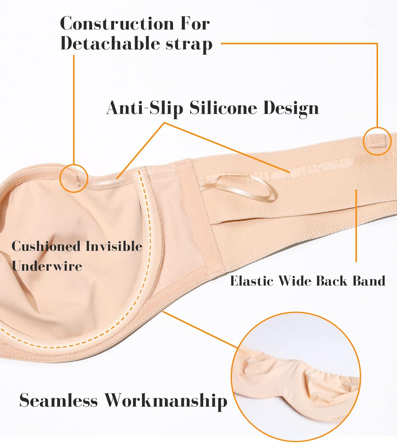 Women’s Unlined Strapless Bra for Plus Size Minimizer Seamless Underwire Large Bust Bandeau